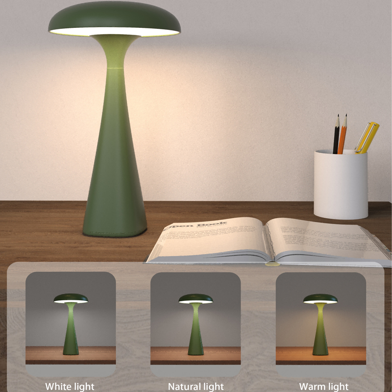 This is an ambience table lamp. It features three color temperatures: warm white, natural white and cool white. The touch switch supports stepless dimming, and it comes with a built-in 1200 mAh rechargeable battery. Three colors are available for the lamp body. If you like it too, please click the link below to contact us.