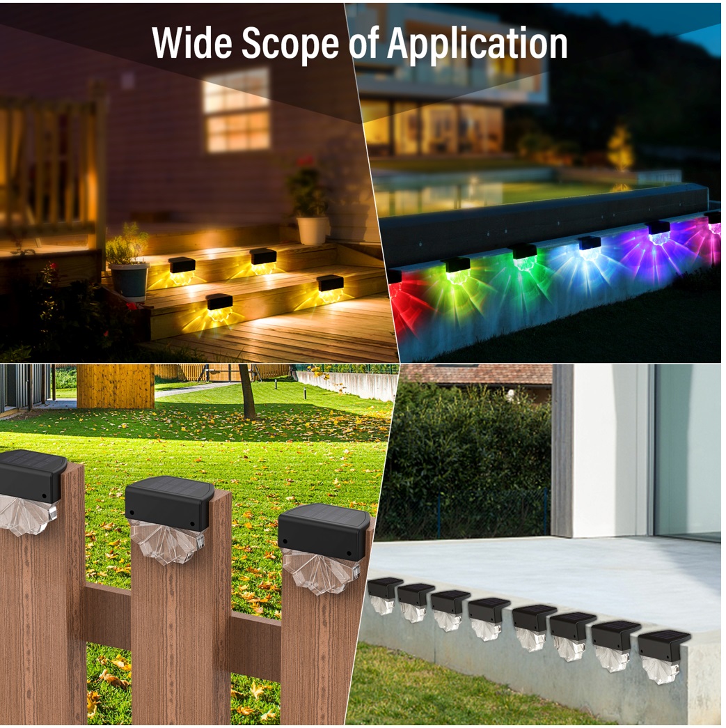 Upgrade your outdoor steps, pathways, and patios with our Personal Solar RGBW LED Step Light—a perfect blend of eco-friendliness and versatile lighting. Powered by a 2V 150mA 0.3W monocrystalline silicon PET laminated solar panel, it charges fully in just 6–8 hours and delivers 8–10 hours of continuous illumination. Equipped with a 1.2V 600mAh AAA lithium battery, this light features 3 high-brightness LEDs (1 white + 1 warm white + 1 RGB full-color) that emit 10 lumens of soft, vibrant light.