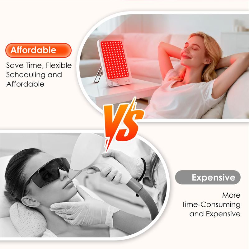 Red light therapy lamp has 120 LEDs light, each light includes 2 pcs 660 nm red light (visible) + 1 pcs 850nm infrared light (invisible) can gives you more comprehensive Skin Care. Red light device with 660 and near-infrared 850 nm is the best combination wavelength for therapy by penetrate and cause thermal effects to increase tissue temperature, promote blood circulation, enhance metabolism, improve cell vitality.
